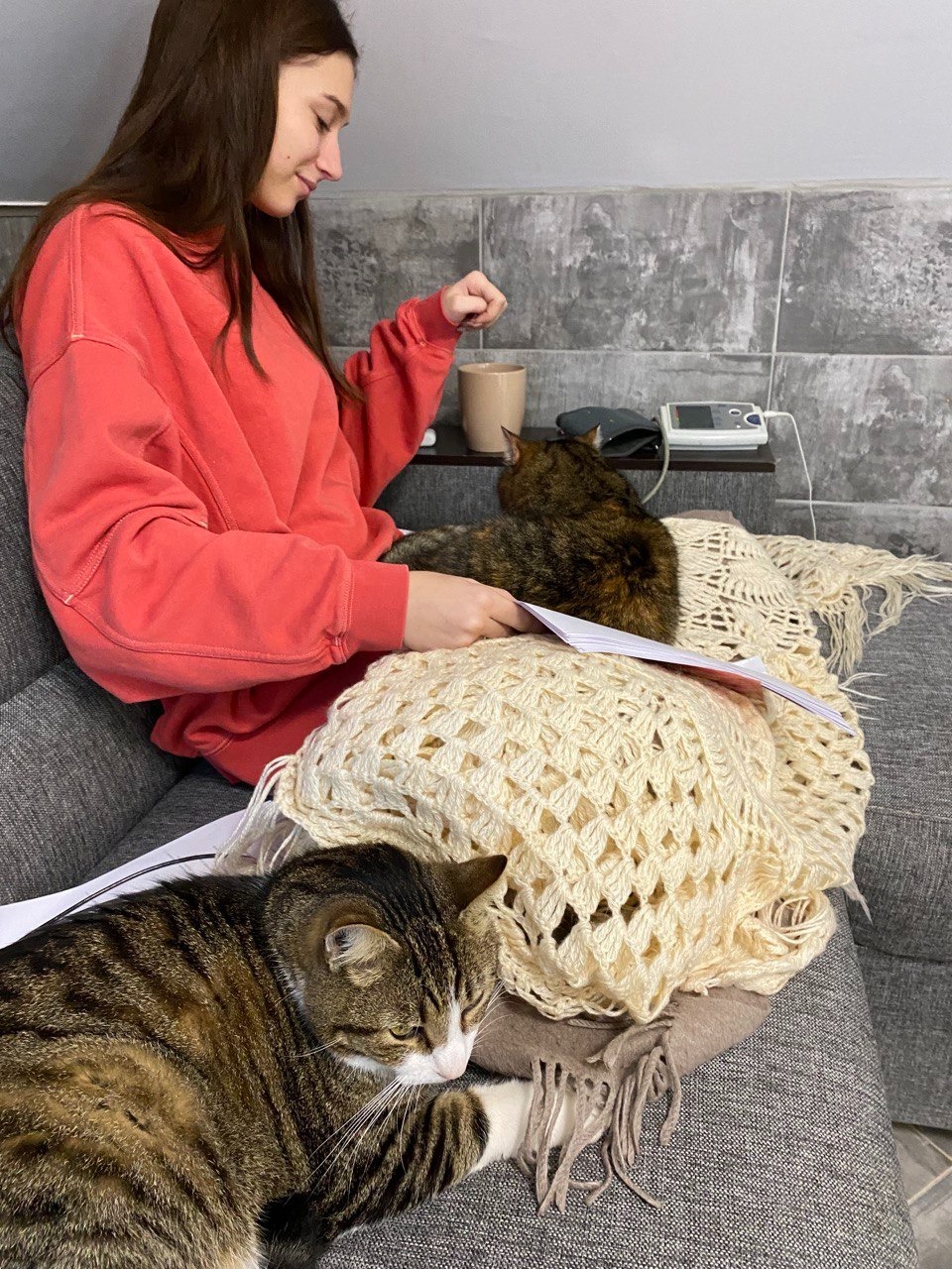 Ну и, конечно, вместе со вторым кототерапевтом - Геральтом, всегда готова поддержать наших учеников в их трудную минту.